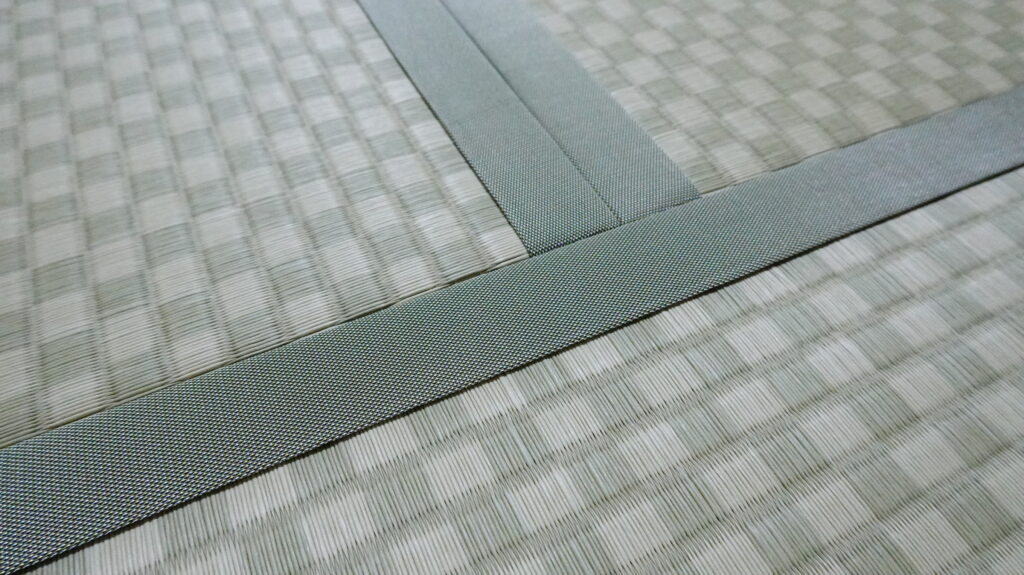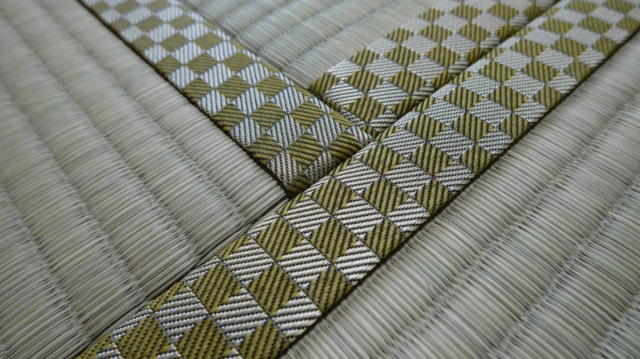 縁なし畳とは、文字通り縁がありません。正方形に作り縦と横を互い違いに敷く、市松敷きにすることが多いです。これは、畳おもての織り目によって光の反射が変わり、色が違って見えることを利用しています。色も様々あり、自分好みの色にする楽しみもあります。